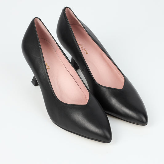 Canary Black Leather V Cut Heels