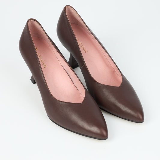 Canary Brown Leather V Cut Heels