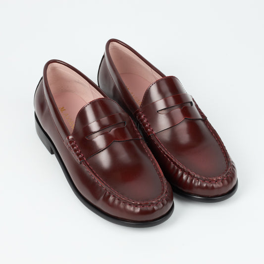 Reno Burgundy Burnish Classic Leather Loafers with 1-Inch Heel