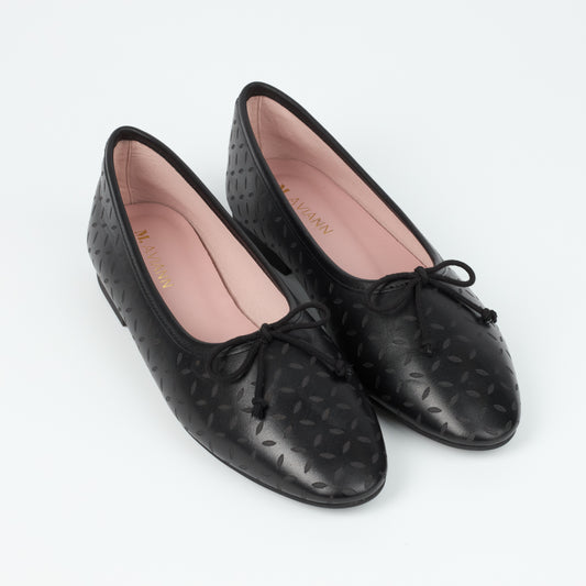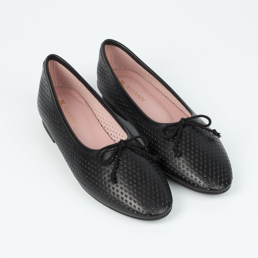Roma Black Perforated Elegant Leather Flat