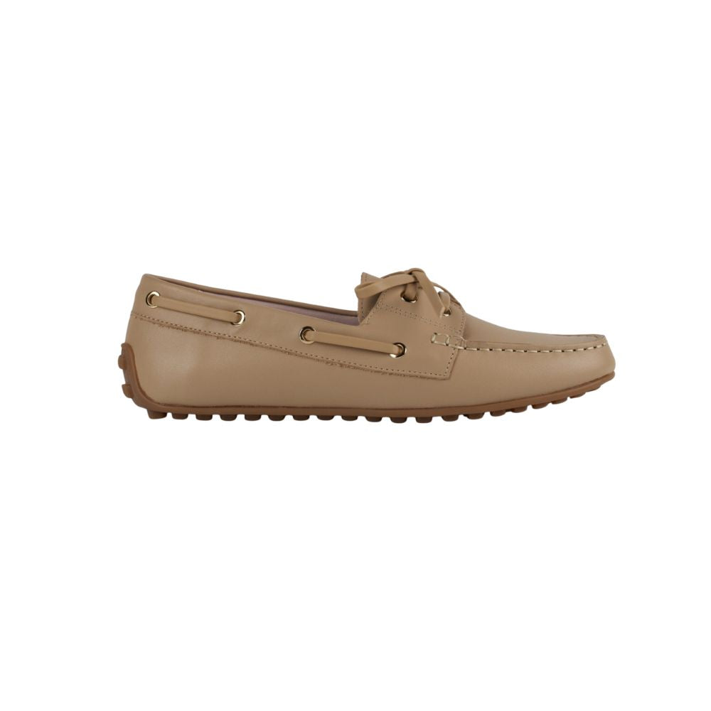 Sevilla Beige Leather Boat Moccasins